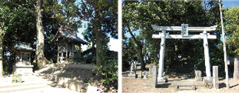 神社は、小高いところにあり、木々に囲まれた境内です。また、境内には庚申塔、阿夫利神社、青面金剛尊があります。